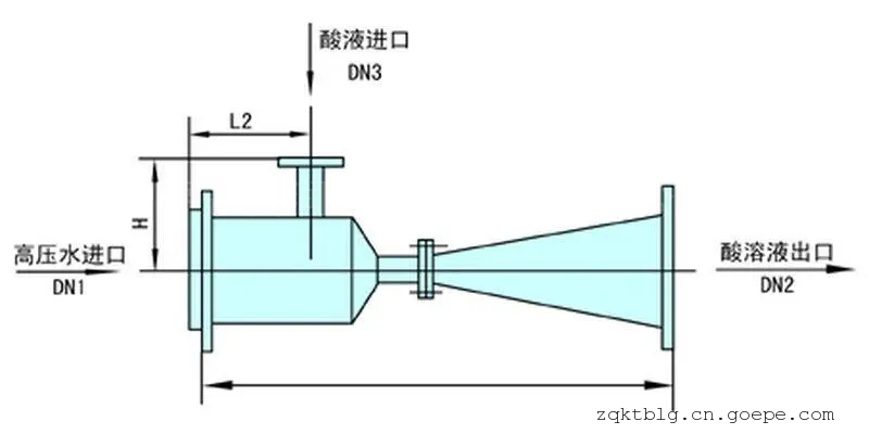 酸堿噴射器主體配套的喉管以下部分在放置、運(yùn)輸時(shí)要拆開,噴射器本身防止碰撞,以免設(shè)備變形,同心度受到影響。酸堿噴射器安裝要垂直同心,尾管可用卡子固定在槽鋼支架上,吸氣口方位可根據(jù)實(shí)際情況而定,但應(yīng)保證較充分的吸入新鮮空氣。脫硫噴射器的主體安裝。每只酸堿噴射器在槽中工作介面約為2m2。脫硫噴射器支數(shù)是結(jié)合再生溶液循環(huán)量、脫硫負(fù)荷、氣體凈化度和被脫氣體種類及工況條件等來確定的。脫硫噴射器在槽中要合理排布。 WGP-3023酸堿噴射器從上至下依次分為頂上、漸縮段、混合段、擴(kuò)散段和尾管,頂上設(shè)有高壓脫硫液入口和空氣入口,高壓脫硫液入口與漸縮段相通,混合段內(nèi)設(shè)有混合室,混合室與空氣入口相通,尾管的底部設(shè)有氣液混合體出口。酸堿噴射器體積小、結(jié)構(gòu)緊湊、重量較輕而效能又比較高,性能安全可靠,運(yùn)行費(fèi)用低,操作維修方便。