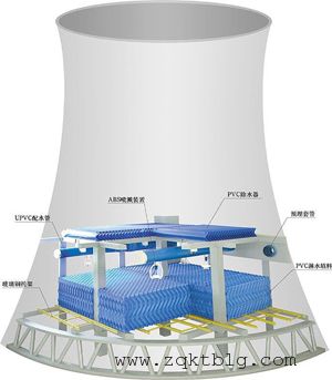 冷卻水通過進水管流入布水管,然后通過布水管上的噴孔形成水流,灑在冷卻塔的填料上。由于噴孔的直徑比較小,水流具有一定的速度,根據(jù)作用力與反作用力的原理,布水管受到與水流方向相反的作用力而旋轉(zhuǎn),使水流不停地分布到冷卻塔的填料上。