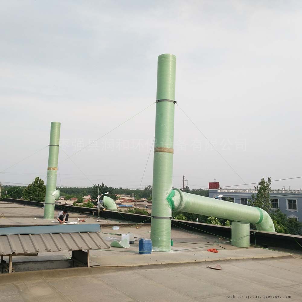 b、 DN900玻璃鋼排氣筒再從上到下依次吊裝,連接,緊固;