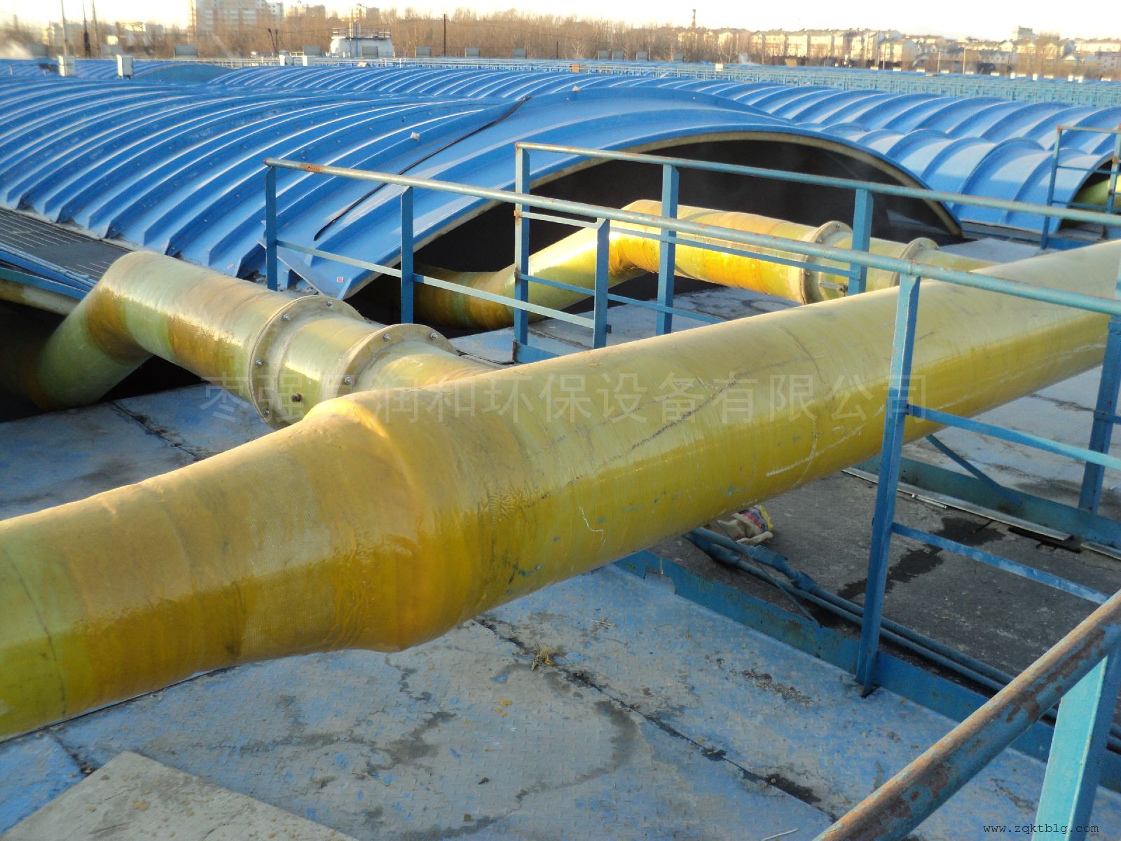 根據(jù)常溫樹脂的粘度,可對其進(jìn)行適當(dāng)?shù)念A(yù)熱,污水處理廠除臭加蓋 4、玻璃纖維逐層糊制