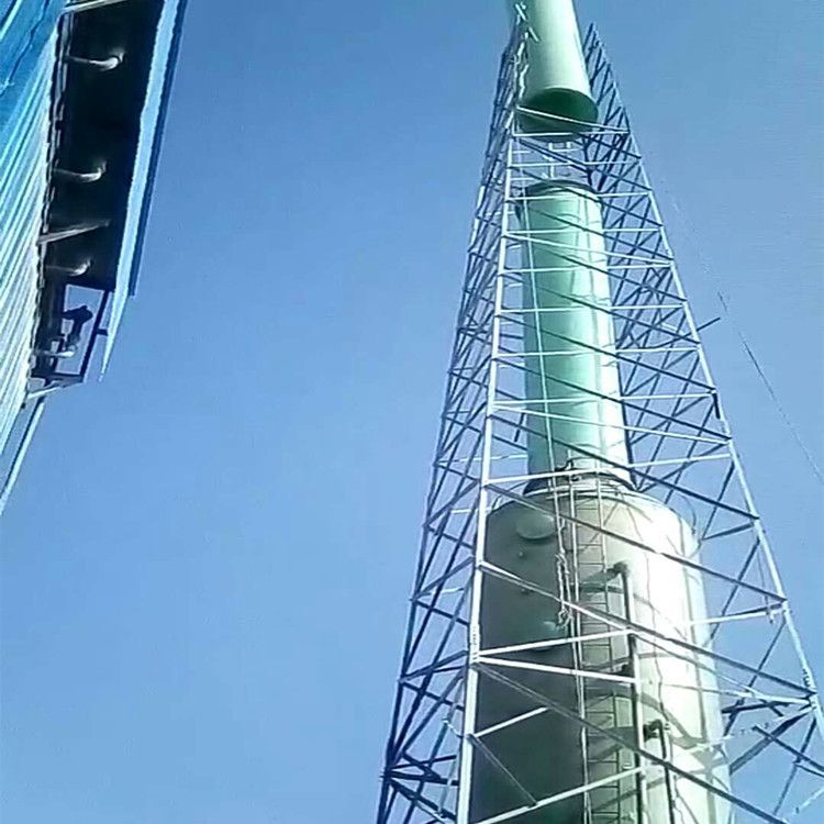 外部保護(hù)架:玻璃鋼煙囪外部可按設(shè)計搭設(shè)鋼塔保護(hù)架,適合在惡劣氣象條件下的使用。